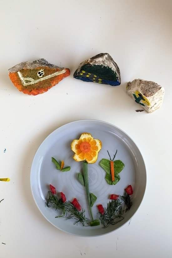 Ils lui préparent des cadeaux colorés, inventifs pour l’accueillir de la meilleure façon. 👐 Et puisqu’on mange toujours d’abord avec les yeux, ils décorent des assiettes qui lui ouvriront l’appétit, peignent des pierres qui lui apporteront une énergie positive et lui préparent des glaces parce qu’elle a 9 ans et les adore sûrement.