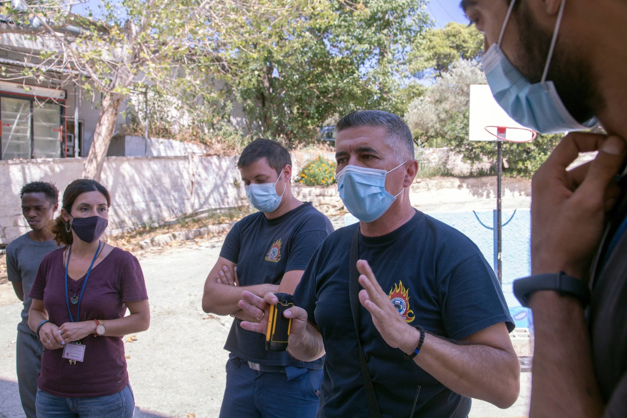 Aussi devons-nous tous nous préparer à toute éventualité. La section des pompiers volontaires de Penteli a été invitée par la coordinatrice du foyer à venir parler aux jeunes et à nous expliquer à nouveau la conduite à tenir pour faire face à toute contrainte exceptionnelle. En plus du dispositif de protection incendie déjà installé dans les lieux, les jeunes ont été informés du plan que nous devrons suivre en cas de danger. Espérons que cela n’arrive jamais.