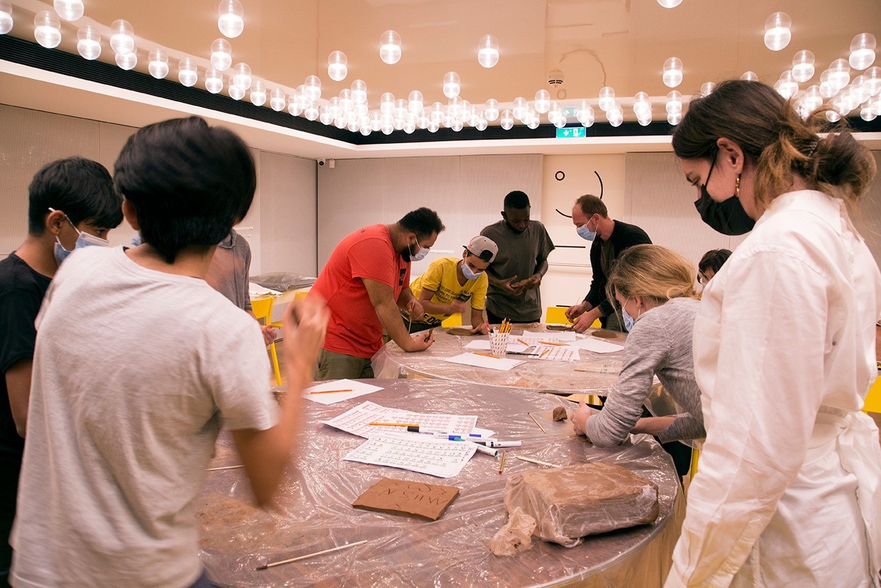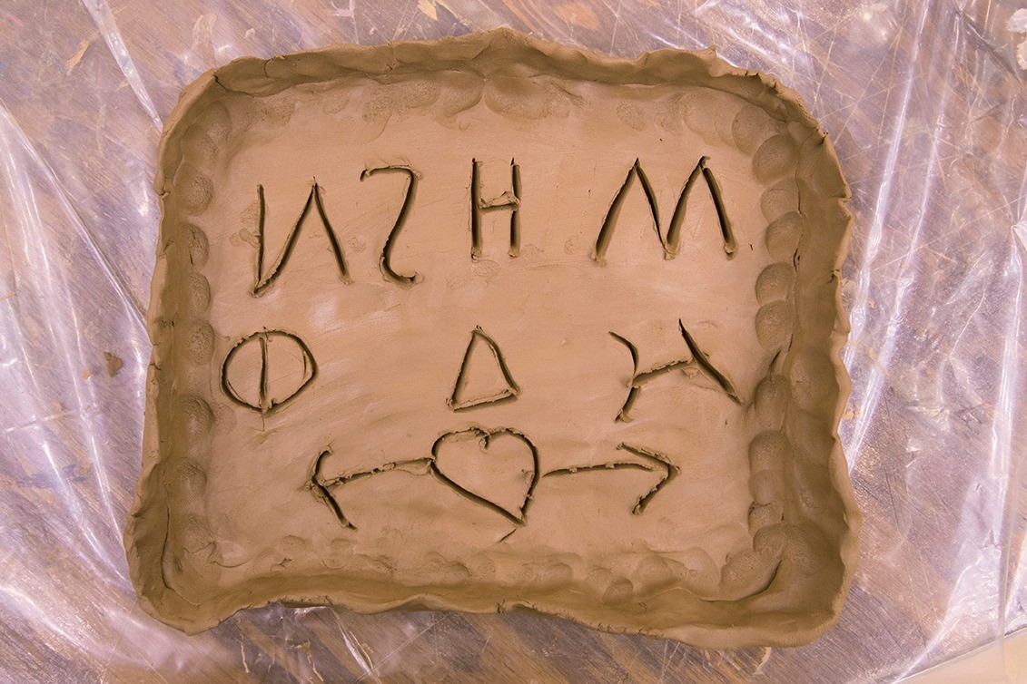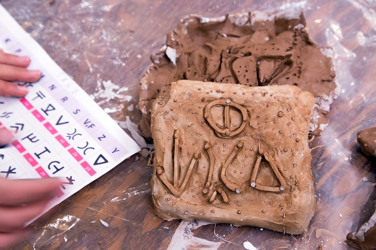 Après un beau voyage dans l’impressionnante collection du Musée, les jeunes sont montés dans l’espace dédié aux programmes pédagogiques où ils ont pu s’adonner à la pratique du chypro-minoen en fabriquant leurs propres plaques d’argile.