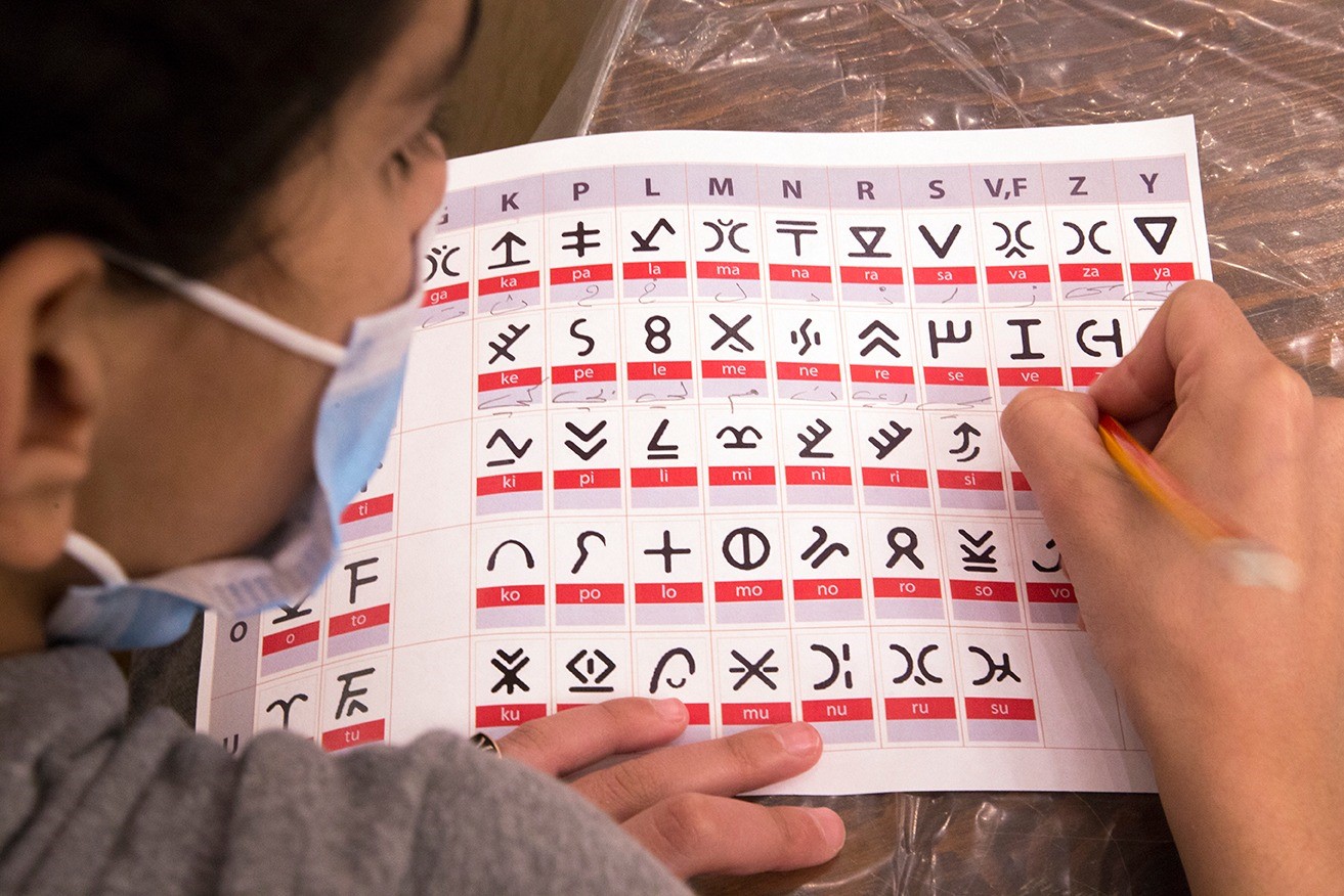 À l’initiative du Musée des Arts cycladiques ce programme, débuté en 2016, propose des ateliers pédagogiques à des réfugiés. Par le biais de ces ateliers, les jeunes qui ne parlent pas la même langue, issus de socles sociaux et culturels différents, apprennent à utiliser l’écriture chypro-minoenne comme code de communication commun, grâce à l’art.